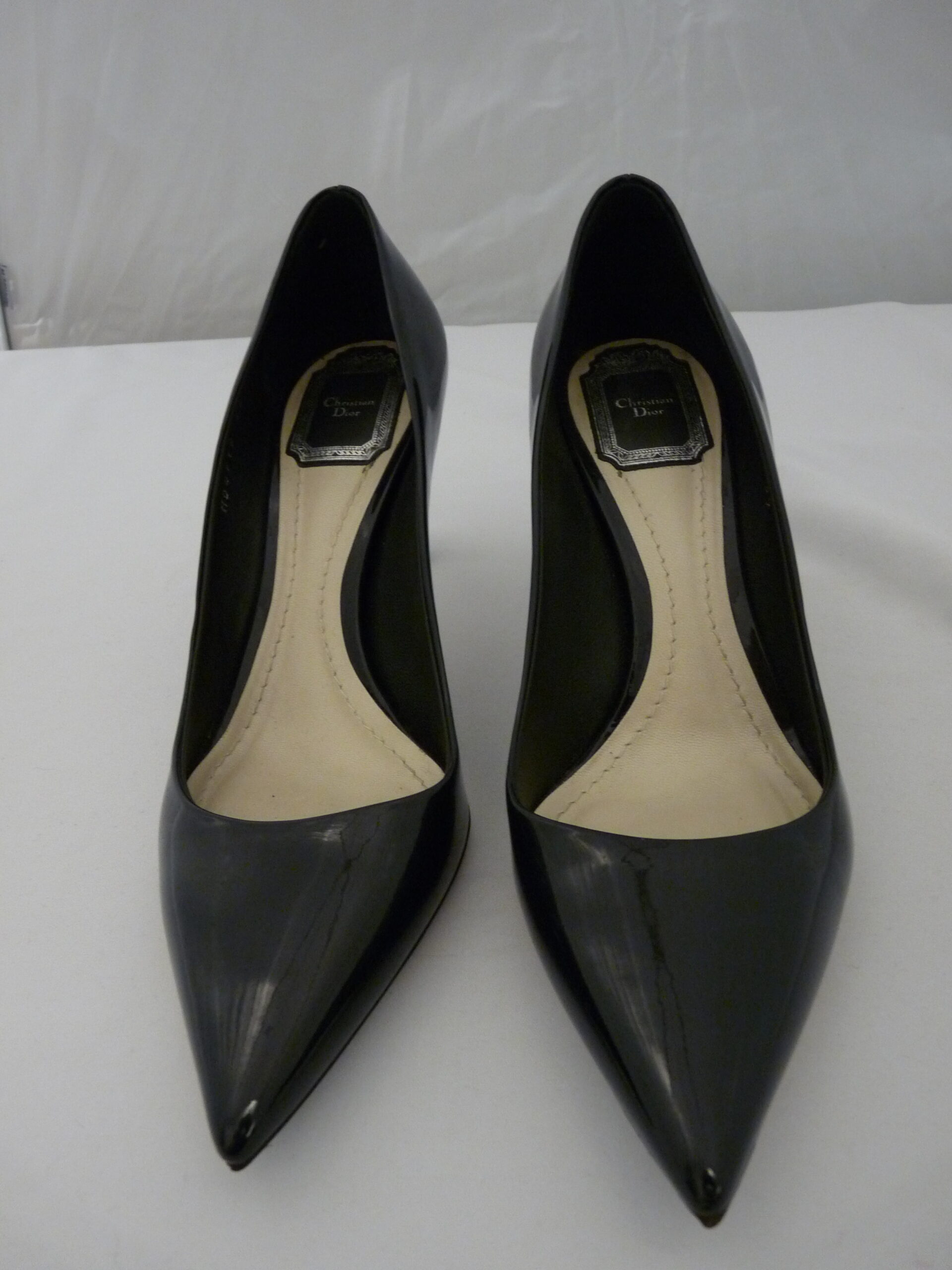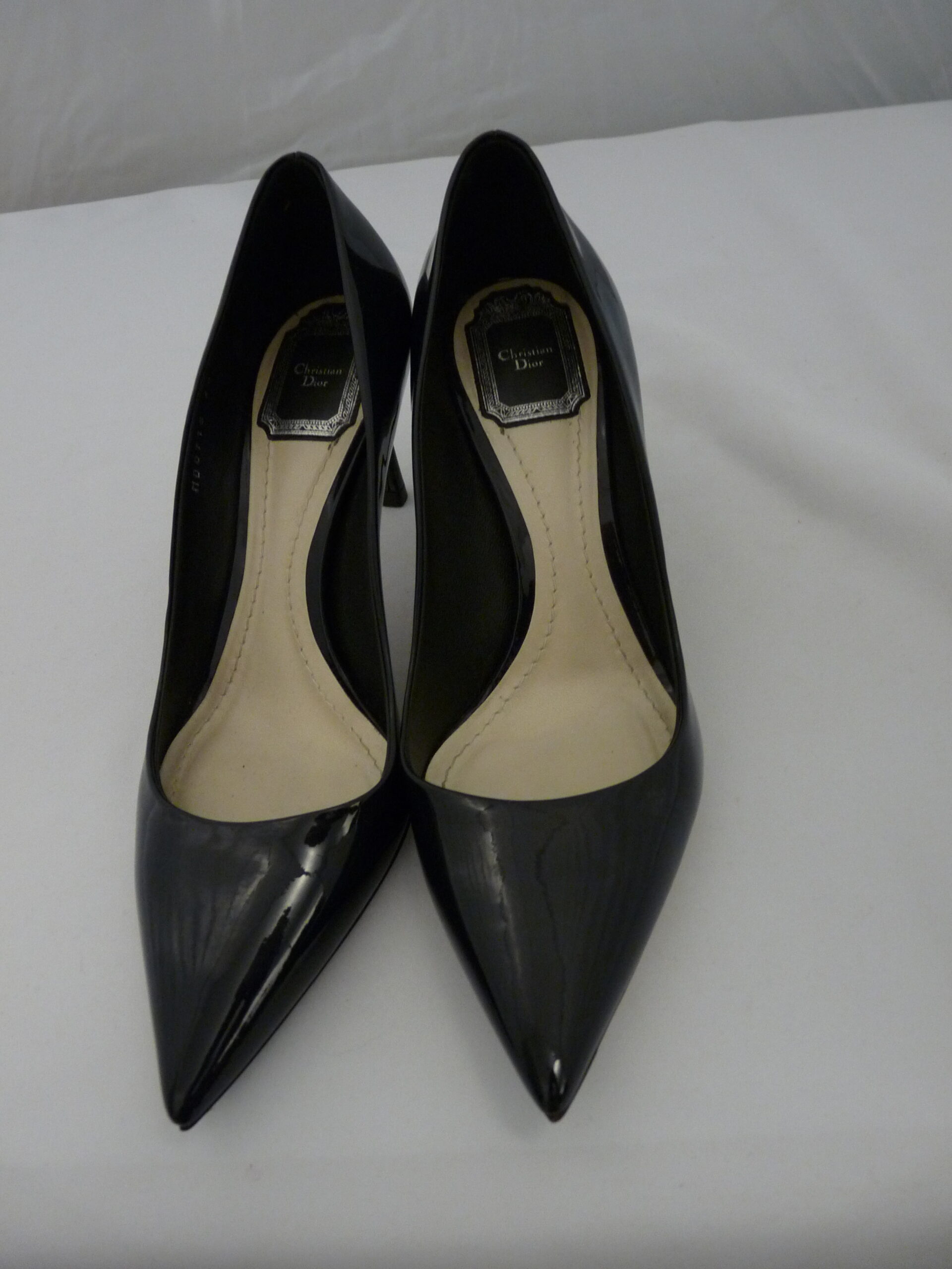 Blaue Pumps von Christian Dior aus dunkelblauem Lackleder mit Ledersohle in Größe 39.