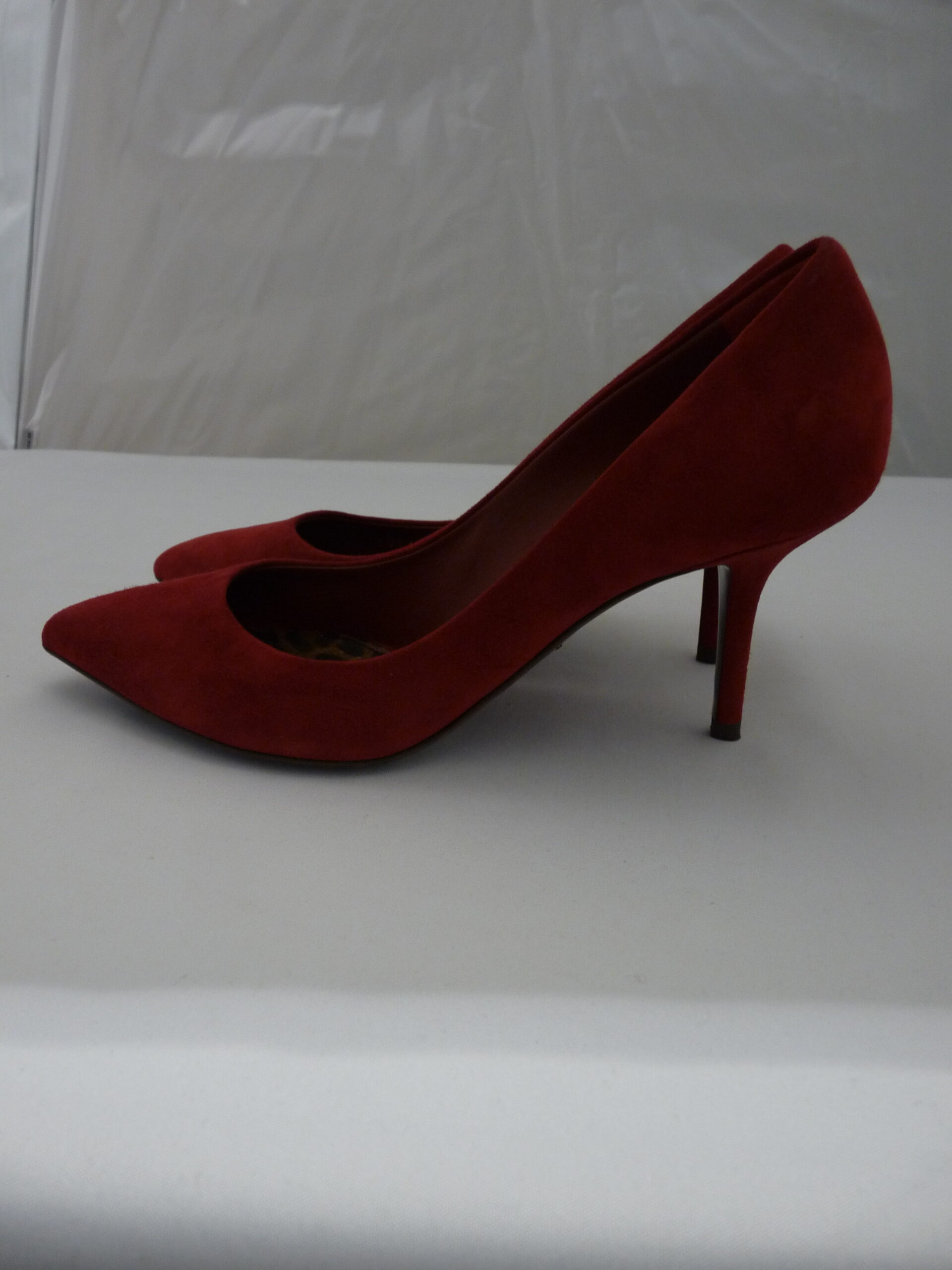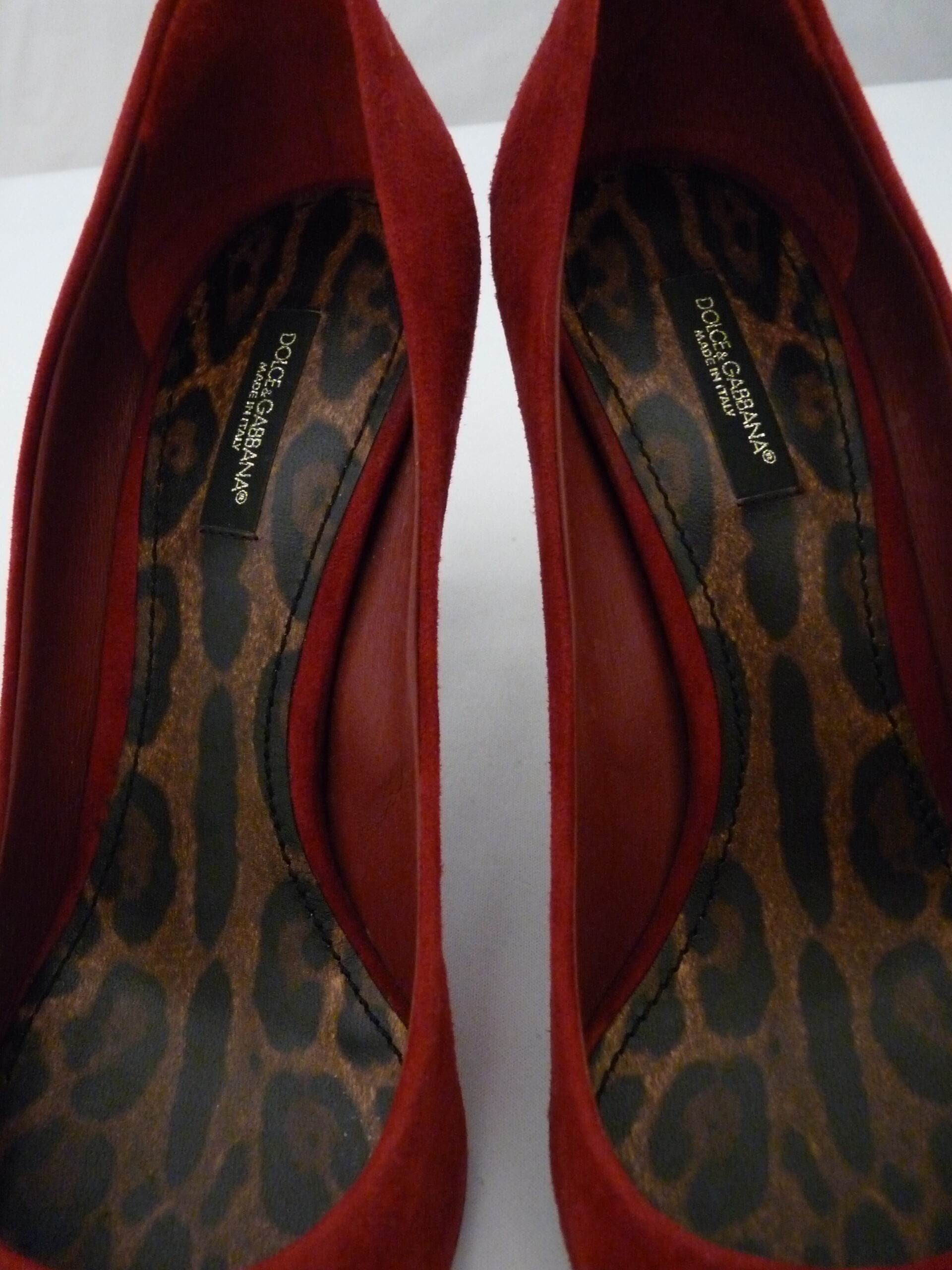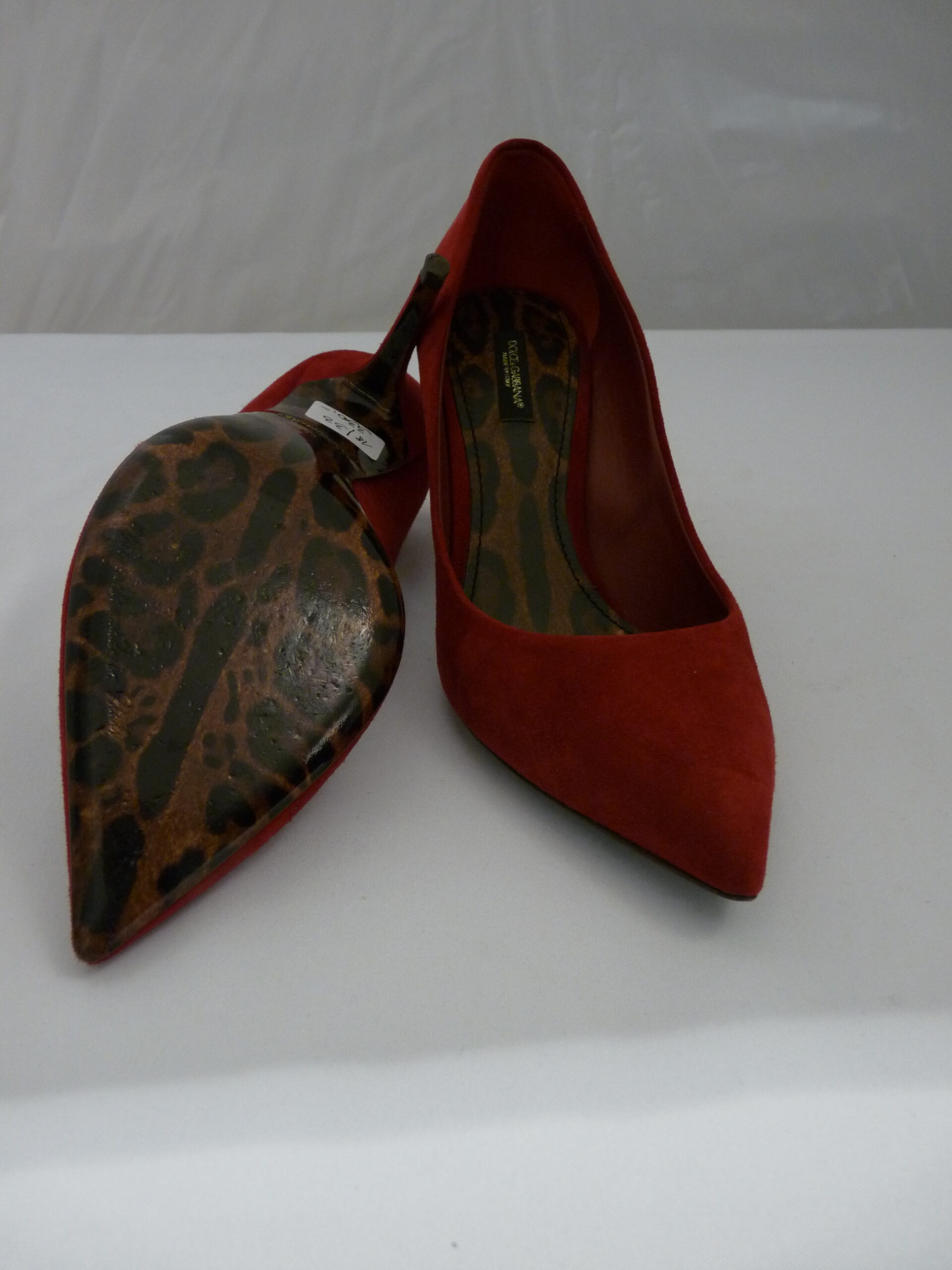 Rote Pumps von Dolce&Gabbana aus rotem Velourleder mit Ledersohle in Größe 39.