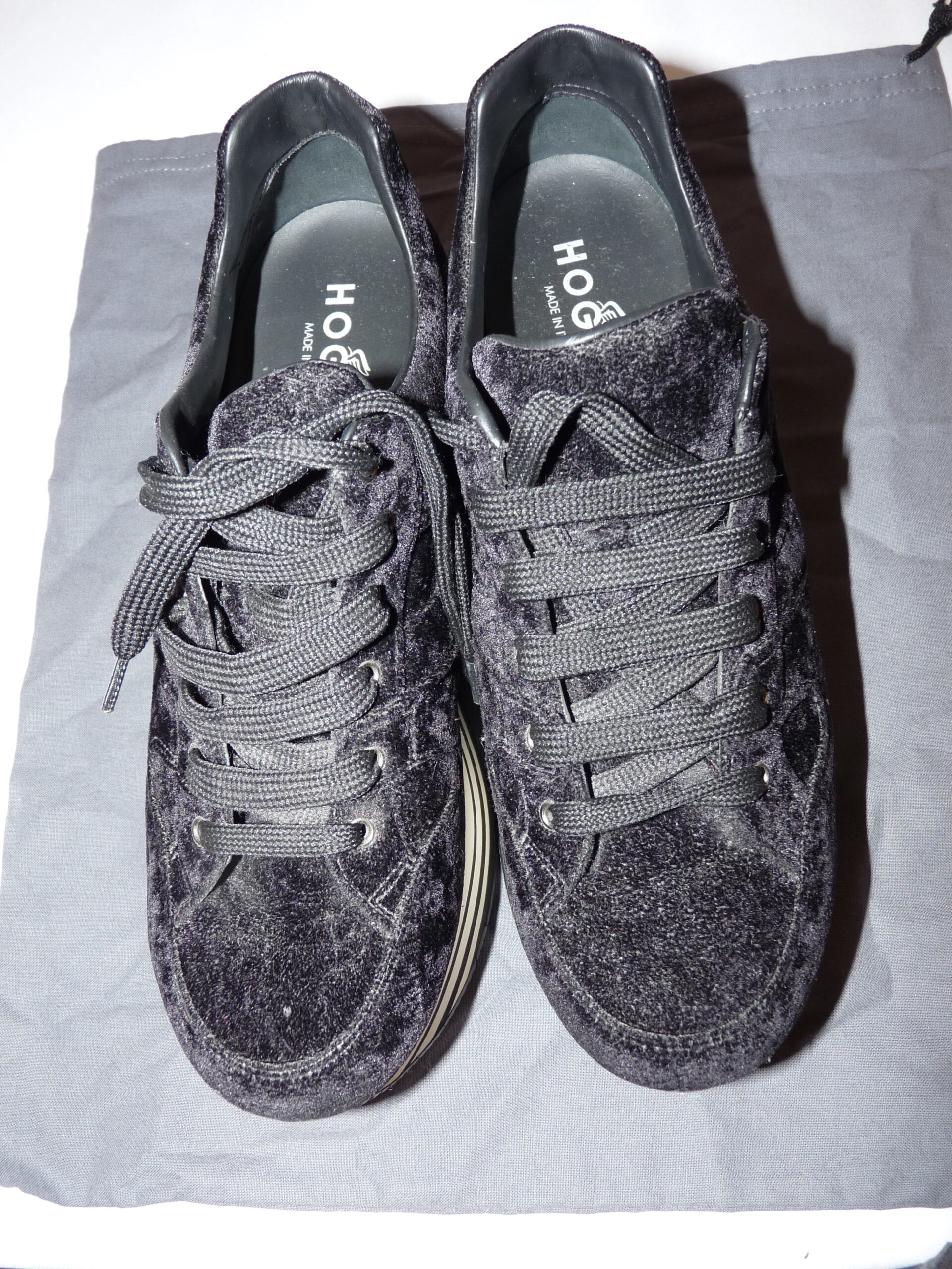 Schwarze Sneaker aus Samt und Leder von Hogan mit Plateausohle in Größe 38