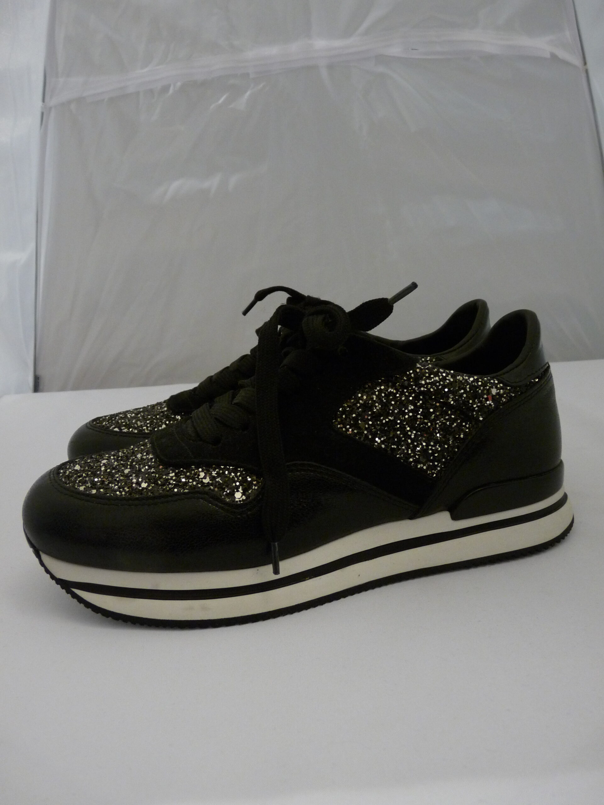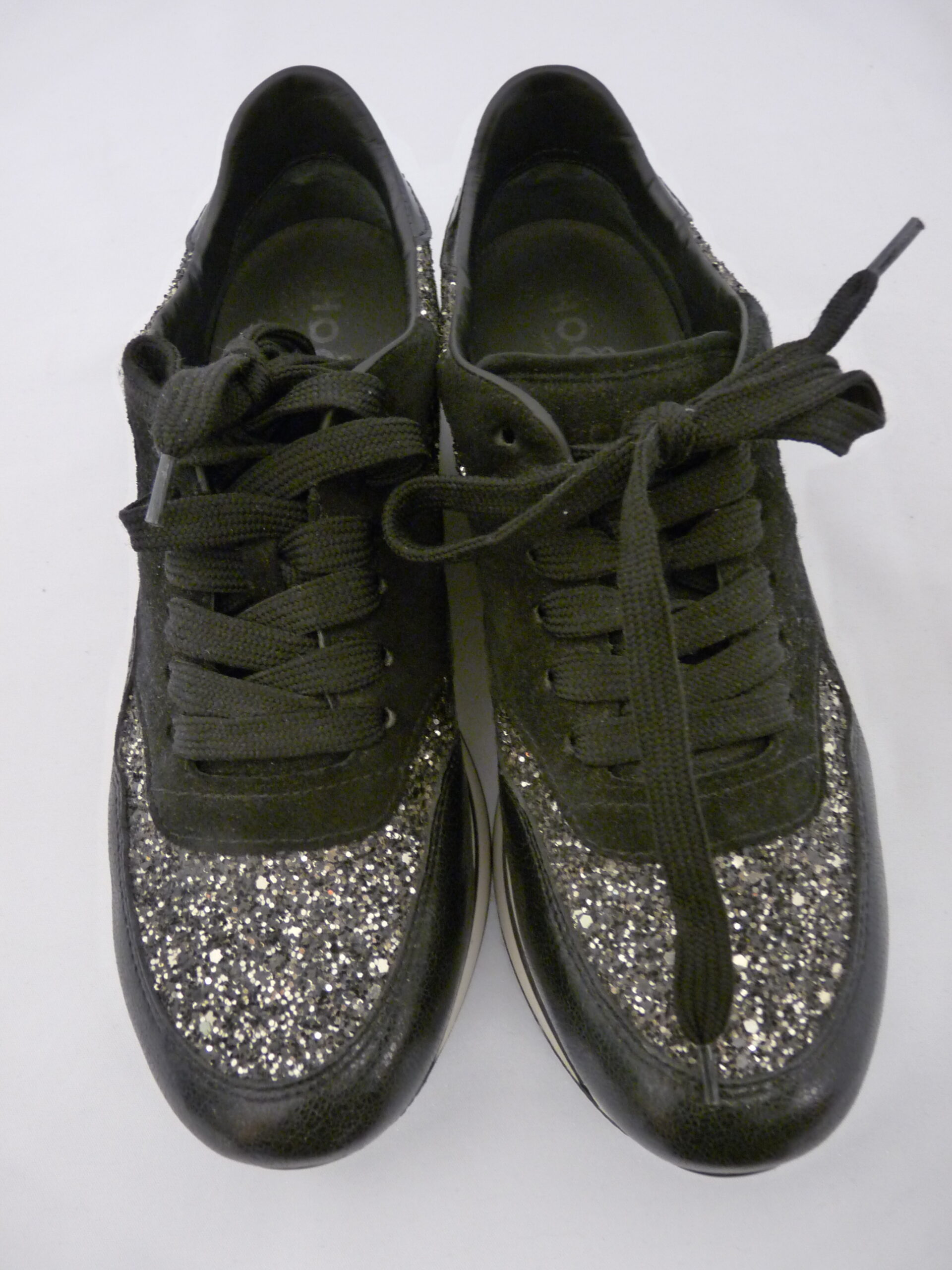 Schwarze Sneaker aus Leder von Hogan mit Glitzersteinchen und Plateausohle in Größe 38